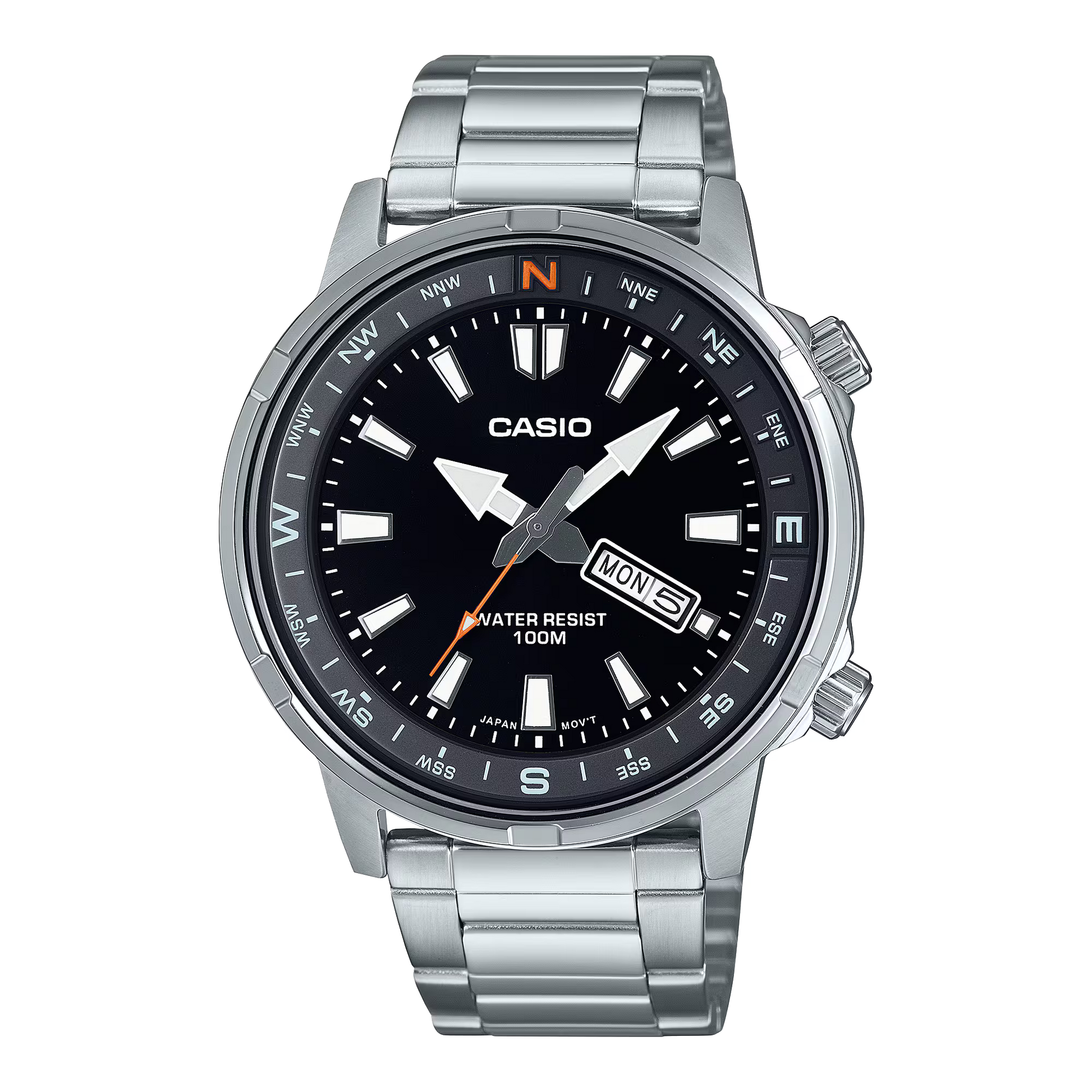 Blaze your own trail with a sporty, stylish analog timepiece featuring a rotating compass ring. Enjoy the confidence of knowing you’ll keep moving in the right direction even if you momentarily lose way.